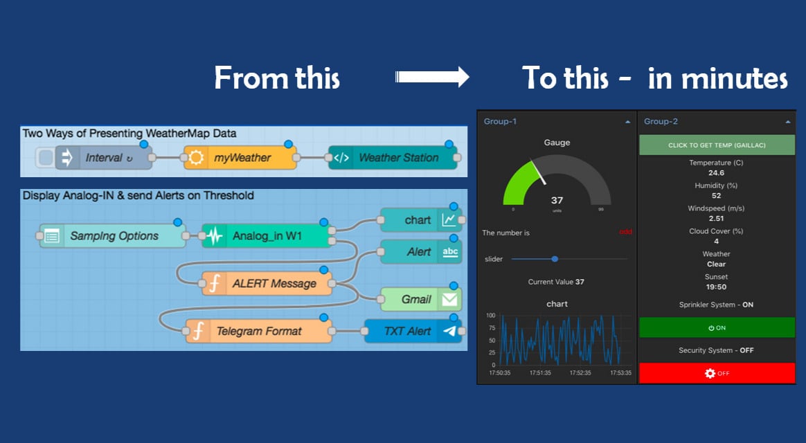 For the more advanced user, function nodes offer the ability to write detailed code in JavaScript, opening unlimited flexibility to tackle the most challenging problems.