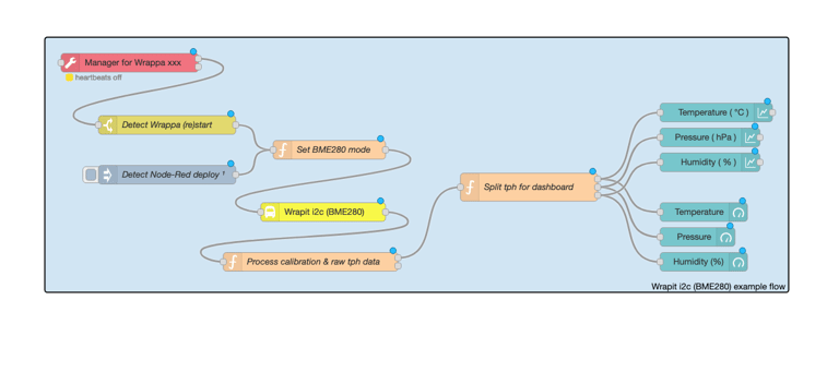 I2C, One-Wire (1W), PWM, Triggered Analog Outputs (TAO)The integrated Hub and Wrappa solution comes with sample flows supporting the following sensors: